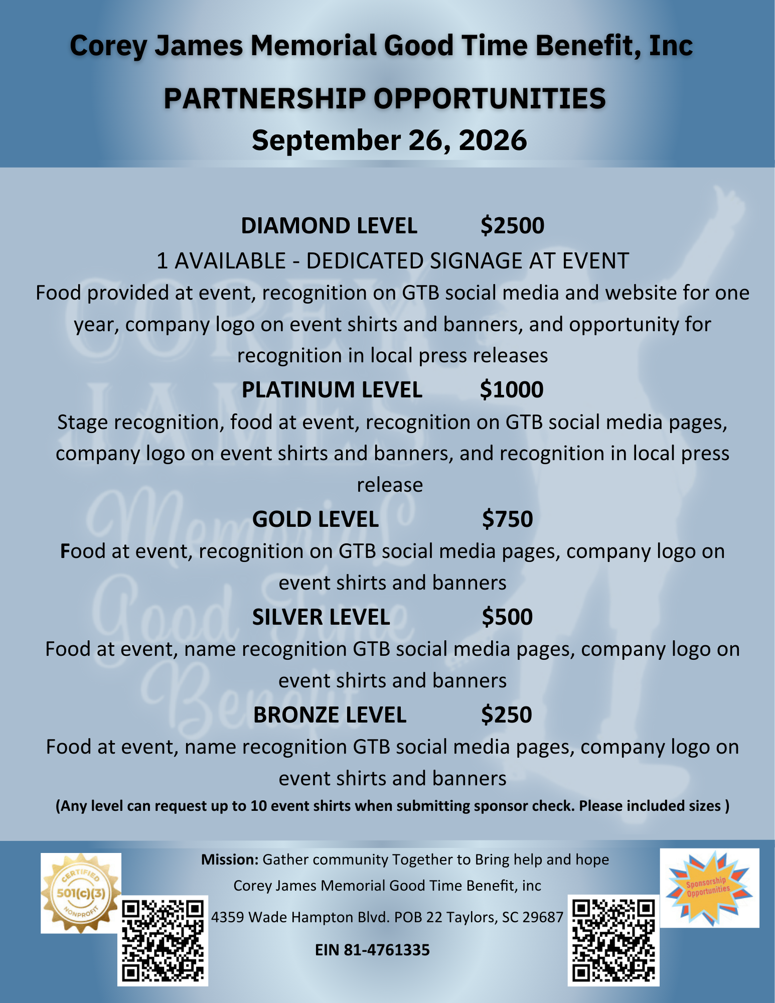 The Corey James Memorial Good Time Benefit, Inc